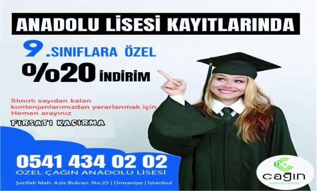 Ümraniye Özel Çağın Anadolu Lisesi, Türk Dili ve Edebiyatı Öğretmeni Banu Özer Bilgin ve Biyoloji Öğretmeni Engin Bilgin tarafından 2011 yılında kurulmuş; 2017 yılında aralarına Halkla İlişkiler Uzmanı Bengü Özön'ün de katılmasıyla eğitim-öğretim faaliyetlerini güçlü bir şekilde sürdürmeye devam etmiştir. Çağdaş temellere dayalı; akıl, bilim, sanat ve sporla bütünleşen bir eğitim anlayışı ile MUTLU VE ÖNCÜ BİREYLER yetiştirmeyi hedefleyen okulumuz; tarihini, geleneğini, kültürünü bilen, Atatürkçülük fikri ile çağdaş nesiller yetiştirmeyi kendine ilke edinmiştir. Bizler, en değerli varlıklarınız olan evlatlarınızı Ümraniye Özel Çağın Anadolu Lisesi'ne emanet etmenizin sorumluluğunu taşıyor ve gençlerimizi aydın, ülke sevgisiyle dolu, mutlu ve özgür iradeli bireyler olarak yetiştiriyoruz. Geleceğimizin teminatı olan öğrencilerimizi seviyor, onlara saygı duyuyor ve hepsiyle ayrı ayrı gurur duyuyoruz. Gelin bu gururu özel lise Çağın Anadolu Lisesi ile hep birlikte yaşayalım.